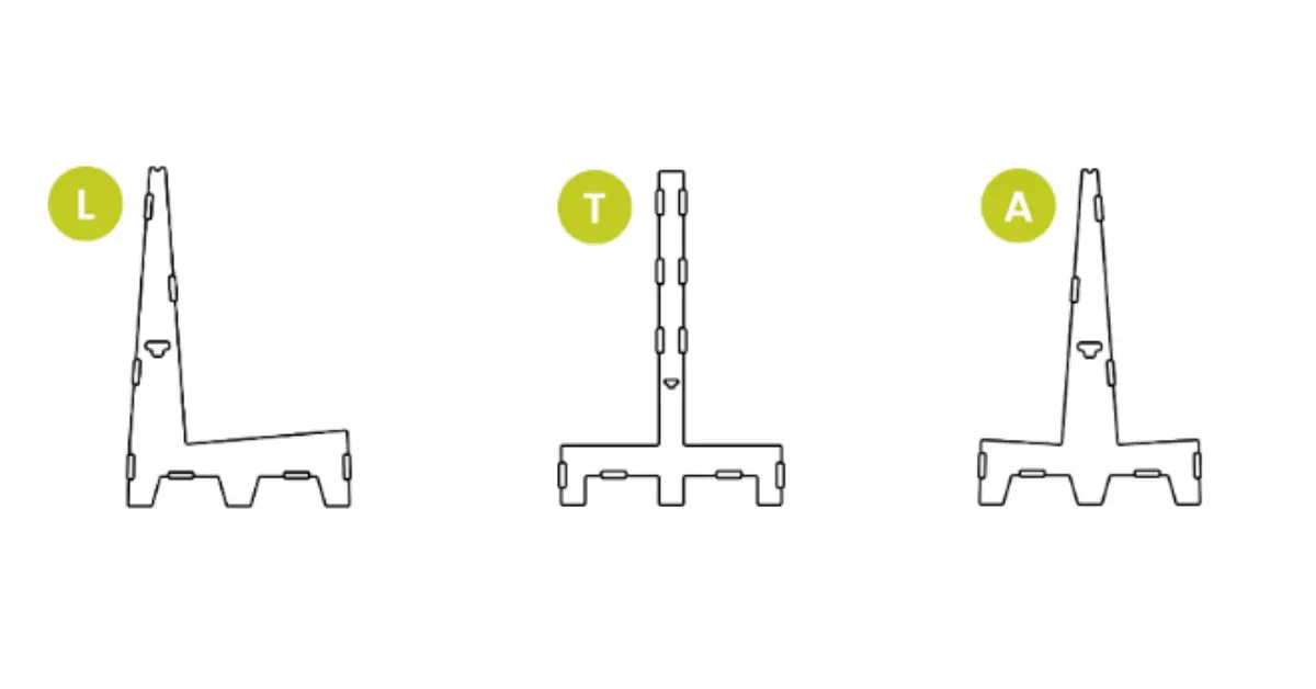 - L-frame: Compact and convenient for storage or use against a wall.