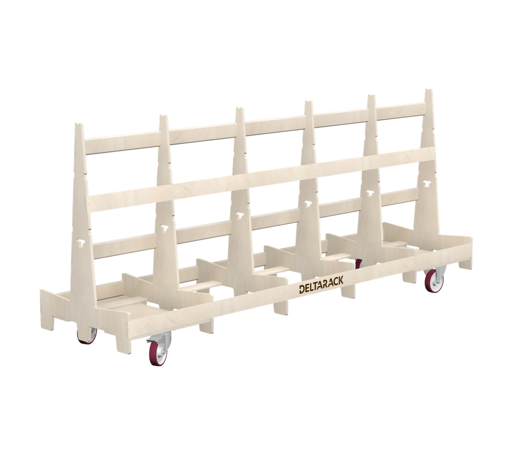 Carros de transporte para planchas. Para el transporte seguro de vidros, paneles de madera, piedras naturales y azulejos, así como ventanas y puertas completas. Ancho del estante de 80 cm, largo del estante de 302 cm, altura del estante de 122 cm